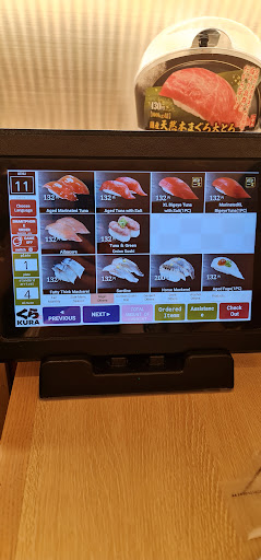 Read moreThis was fun and interesting and had an excellent cost-performance experience for a conveyor-belt Sushi experience. We had dinner on a Wednesday (530pm), and it wasn't crowded at all. When you arrive, you need to digitally register at the entrance your headcount (separately identify adults vs kids), then you're issued a slip with your table assignment. Once seated, you'll have at the table your usual chopsticks, toothpicks, teaspoons (for mixing your hot matcha or eating desser), pickles, matcha powder, and hot water dispenser to make tea (optional), plus 3 kinds of soy sauces. You can either choose directly from the conveyor belt, or instead of waiting, you can directly order using the tablet on the table, or via QR code using your mobile. Then a few minutes later, your ala carte order zips its way to you. Condiments are also on the belt in tiny packets -- salt, togarashi, wasabi and sesame oil.
