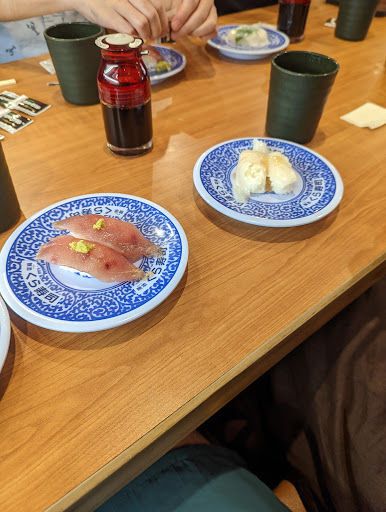 Read moreThis specific sushi spot is very large so chances of waiting is slim. The price is decent, you pay per plate so eat according to what you want to pay. The green tea is unlimited as you have a hot water spout and matcha powder on the table in front of you. I think it’s fun to order dishes and watch it come down the conveyor belt and it’s also fun to wait and grab what you want from the revolving sushi bar. I didn’t win any price even though I ate 15 plates haha. How sad but the food was decent, steamed egg pudding was yummy and the seasonal sushi was good. Service was excellent, anytime you called for help the waitress was quick to respond and kindly at that. A different more modern take on sushi but a fun experience for professionals, students, kids and...