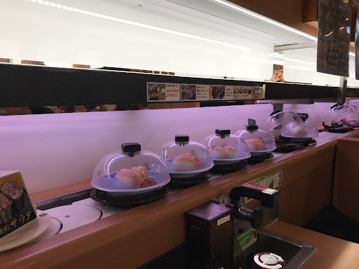 This sushi place is awesome! Great place for kids and couples! You get to play a game for a chance to win a small prize (e.g. a small pin). You get one play for every 5 plates. You put the plates in a little metal slot beside the hot water dispenser at your table. It will start as soon as you put in 5 plates (no need to press any buttons). If you think this is great, it gets better! Every plate is only 100 yen + tax! If the item is over 100 yen, it would tell you on the screen. If there is no price beside the item, it means that it is 100 yen. Although there is no English menu, there are pictures on the screen so you can kind of tell what you are ordering. We arrived at the restaurant around 3pm so we didn’t have to wait too long to get a seat. However, the restaurant was still very busy and completely full so you might have to wait a really long time to get a seat if you come...