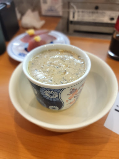 寿司は¥110のものしか注文しません。その寿司の多くはネタとシャリが小さめです。はま寿司ではここまで小さいのはあまり見ないですね。 シャリも小さめ。乾燥してるように思いました。巻物もこのは4つ切りです。はま寿司は6つ切り、量はほぼ同じかもしれませんが、手間をおしんでるのでしょうか?わたしは嫌です!強いて言えばイワシ?はよかったですね! 汁も高いですね。あおさの味噌汁¥200します。はま寿司の倍!!しかもクーポンで一杯無料!!!!!!話になりません。
