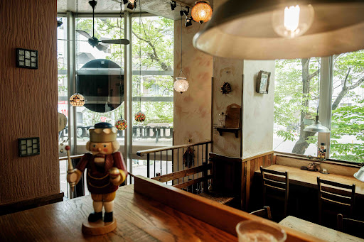 Great cafe. I tried their cake with ice cream (to choose from six flavors) and a decaf coffee. The cake was delicious, a great contrast between the warmth of the cake and the coldness of ice cream. Total was ¥1,320. They also served walnuts from Nagano with a nutcracker, and the walnuts were delicious. The place has old-style nutcrackers and walnut-inspired decorations. They have three different rooms where you can seat. It seems popular, so you may have to wait for a bit before getting a seat, but the wait is worth it. Very cute place. Friendly staff. You can pay in cash and by card, but not...
