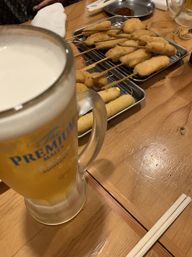 最初のジョッキビール飲みきっても串揚げ出てこない。さみしい。最初のドリンクある内にお願いしたい。