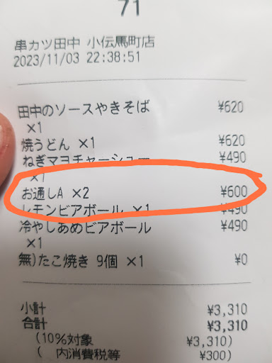 They did not offer us the free plain cabbage appetizers till we asked. And we were charged for them. 300yen per person.