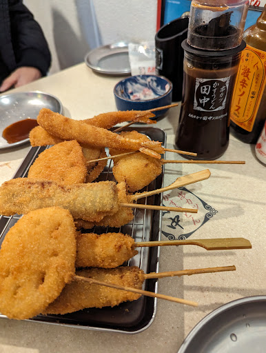 We'd been meaning to try this kushiage chain for some time I finally bit the bullet on a frigid Saturday early evening. Location is really close to Shinbashi station but note that it's a little cramped and thin-walled, so it was cold inside and little they can do to shield from the weather outside.