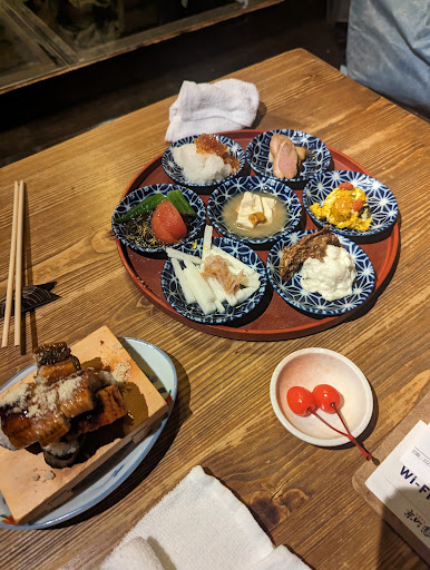 This place is a tourist trap. If you live in Tokyo and you have visitors coming who have never been to Japan before, then fine bring them here for the novelty, but the food is not very good, and the service is mediocre. I came here with my Japanese friend who suggested it as my partner was new to Japan, so we thought it would be fun to bring him here to see a pseudo old-timey Japanese restaurant (I had been once before, but i had been several years before). My partner ordered a beef Katsu dish and karaage, he thoroughly enjoyed both - but to be honest it's pretty hard to screw up karaage. My friend and I shared some sushi orders, but the fish didn't seem that fresh, and the negitoro was downright fishy smelling - which is a bad sign. My Japanese friend's family own a restaurant so I feel validated in my disappointment of the food. If you feel absolutely compelled to try this place, I suggest avoiding any sushi/sashimi dishes as the freshness is questionable. The place was very busy and they were having issues with the QR codes for ordering, not the fault of the staff, but they should have had a backup system in place instead of just waiting for their online system to be fixed. The longer it took to place food orders, the closer we got to "last order." Overall, will...