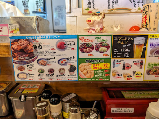 Original review: Very good tonkatsu soup base ramen restaurant. Located right across the street from the Harajuku train station exit, Kyushu Jangara Ramen is above the Family Mart convenient store. There will be a line on the stairs. They do have English menus on the left side when you walk in. You order at the cashier and then you will be seated. This fit my criteria for a typical ramen shop, you get in and out. Service and food prep is fast. There are bowls of ramen for under 1000 yen. My fried garlic oil tonkatsu ramen with all the options was 1430 yen and a big beer 1200 yen. They didn't have gyoza. That was disappointing. Service was as expected for a counter style...
