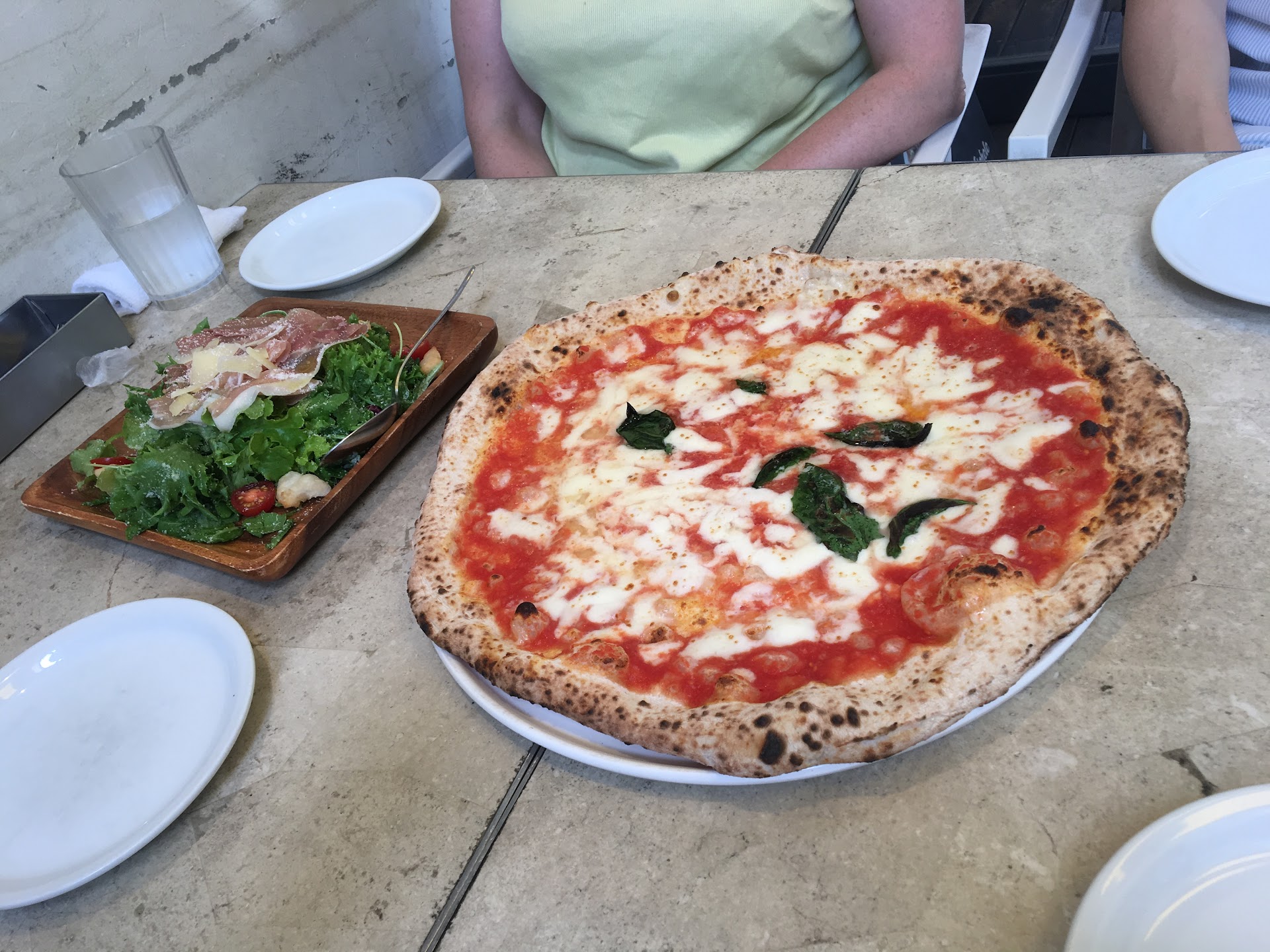 Read moreI very much wanted to love this pizzeria, given its prestigious lineage. The shop was charming, bright, and spacious; the staff were pleasant; and the food arrived promptly. Probably if this had been the first pizza I'd tried in Tokyo, I'd have been duly impressed. It was certainly decent. The tomato base was clean and fruity, and the crust nicely charred and very thin in the authentic Neapolitan style. That said, the crust also lacked that dynamic of crispy exterior and soft, airy interior which defines the very best pies. It was dense and heavy all the way through, and took enough effort to tear off and chew so as to be conspicuous (you didn't devour it so much as persevered as a matter of duty). Moreover, while a good dough should always be well salted, I found this dough to be unnecessarily salty. Lastly, whereas other shops top off their pies with a drizzle of peanut oil or chilli-infused olive oil, LAPM left their pies undressed (at least the ones we tried), which made them feel dry and, as the cheese cooled, slightly rubbery. (The pies are also big, and therefore more suited for sharing, as otherwise they're hard to finish while still hot and melty.)