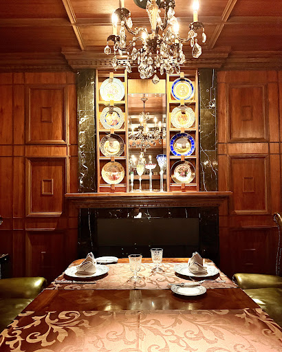 エントランスを抜けてお店に入ると クラシカルで雰囲気のある素敵な店内 バーカウンターが設置されてます 重厚なソファにテーブルセットと 極上の空間が演出されております