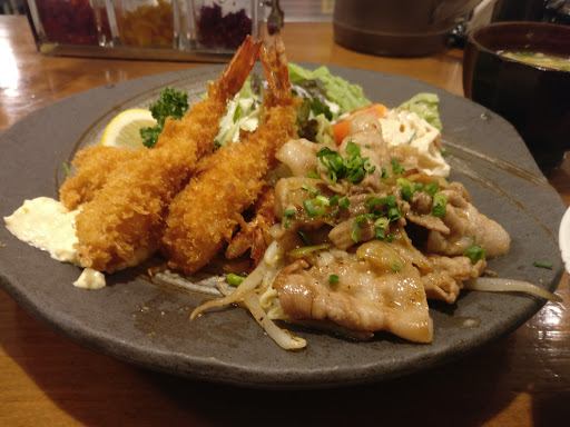 ◯フード イタリアンかと思ってきたら、案外定食。 ヒレカツと海老フライの定食をオーダー。 離乳食完了期の子どもに試しにヒレカツをあげてみたら、最近肉を口からだすのに、ペロリ食べました。 たしかに柔らかかった! 何も言っていないのに、お茶碗にご飯も頂いてしまい…感謝でした。 持っていった離乳食のお弁当(ベタベタの米はいつも残す)そっちのけで白米を頬張っていました。