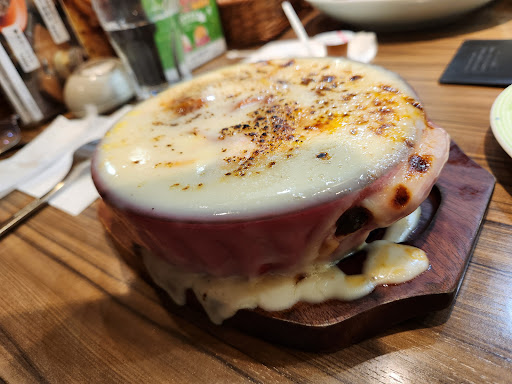 と、散々ランチメニューを書きましたが、今回頼んだのは ランチメニュー以外 の、期間限定メニュー "たっぷりチーズの釜やきボロネーゼ" です 。 『とろ~り あつあつ』の文字と チースが伸び絡みついたボロネーゼの写真に やられました。 当然 ランチメニューではないので、何も付きません。