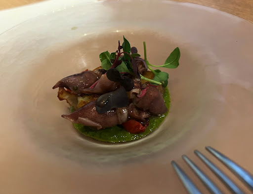 この日もシルクスイート、カブ、ブロッコリーなど、旬の食材がふんだんに使われていました。 シルクスイートはポタージュに。最近のさつまいも独特の、ねっとりと甘いその風味を存分に活かしながら、生ハムオイルの塩味と燻製の香りを添えることでより奥深い味わいに。 カブは魚介のスープでコトコト、スプーンで切れるほど柔らかい。カブの葉まで効果的に使っているところが好感。 ブロッコリーはクタクタにしてサルシッチャとともにパスタソースに。 個人的No.1は、低温調理されたサーモンとディルクリームの前菜。サーモンの下に敷かれたマッシュポテト、ホワイトバルサミコビネガー、厚みがあるのに驚くほど柔らかいサーモン、風味豊かなクリームとディル、フレッシュトマト。それらのパーツ1つずつがまず美味しいし、どれかとどれかを組み合わせても美味しい、さらに全部まとめて口に含むと、もう舌と脳の情報処理能力オーバー笑。 私も連れも、料理を食べながら「◯◯が△△でおいしいね」などと感想を言い合うタイプなんですが、2人揃って「これ、すごい……」と語彙力を無くしました。