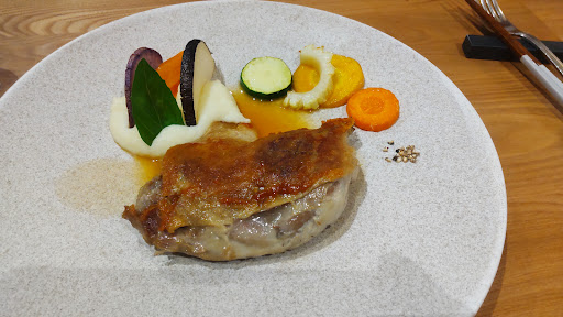 夜のコースはアミューズ、前菜盛り合わせ+メイン+パン+デザート食後の飲み物です。 前菜盛り合わせがとにかく素晴らしい!他のお店の前菜2〜3品分じゃないでしょうか。自家製パンも香ばしくて美味しかったです。 メインは赤ワイン煮込と鴨肉のコンフィをチョイス。鴨肉は塩味がしっかり効いていて、赤ワイン煮込みはお肉がほろほろととろけるようでした。