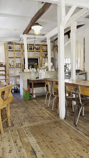 雑貨屋というよりは少し物置のようなエントランスを抜けると、エントランスの横がキッチン、右手に雑貨やパンのスペース、左手に階段が見えます。 キャッシャーのスタッフの手が空いていれば、カフェは上だと教えてくれます。手が空いてない場合は放置されるので、何も言わずに階段を上がればよいと思います。 ちな、キッチンでは老齢の男性が1人で料理を作っていました。