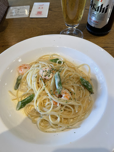 Read moreShrimps and asparagus in a lemon creamy sauce with spaghetti was delicious as was the crepes ( cooked to perfection) with strawberries and cream washed down with a super dry Asahi. Maitre de at the door understood my English and I ordered on the App. I didn’t have long to wait and dishes were cleared away as soon as I was finished. Place is busy with couples, friends and families as it’s Sunday afternoon but everyone seems happy. Nice music playing and there’s a selection of reading material near the entrance. There are plastic bins under the table for you to put your bags or...