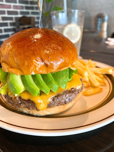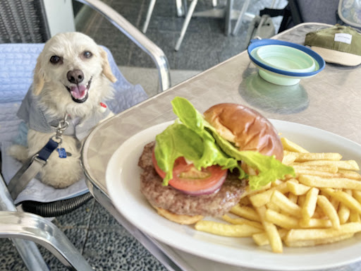 Read moreワンコのお散歩途中で見つけたカフェで、前々から行ってみたかったところです。 平日オープン直後に、ワンコ連れで大人1人で伺いました。北側と南側にそれぞれ出入り口とテラス席が設けられています。北側が喫煙可能だそうで、私は非喫煙者なので、南側の道路に面したテラス席に座りました。 店内は、落ち着いたクールモダンな内装で、テラス席と店内席共にゆったりと座れる座席間隔と配置は、安心感があります。またテラス幅が広くて屋根が深いので、雨や日差しも心配要らないですし、鉢植えの植栽もあって、気持ち良いテラス席で、長居したくなります。 ただ、日によっては納品のトラックやごみ収集車も通るので、少し騒がしいかもしれません。 オーダーしたのは、ラルゴバーガーとジャスミンティーでした。 シンプルイズベスト! 1センチ以上の厚めのパティは、塩胡椒のみの味付けで、粗めのひき肉が肉肉しい感じ。 そこに、パティより小さめの柔らかもっちりバンズと、レタス・トマト・オニオンがサンドされていて、ソースはかかっていません。 バンズはトーストされ全体的に熱々の状態、味足しとして、ケチャップソースとマスタードも一緒に提供されました。 ソース無しのグルメバーガー、初めて食べましたが、肉本来の味や野菜・バンズの味をしっかりと味わう事ができました。少しケチャップを足して味変しても食しましたが、ソース無しのバーガーは、飽きがこなくて、ペロッといけちゃいますね。付け合わせのポテトもホクホクで、全て美味しいかったです。 他にパスタやスイーツなど、メニューも豊富なので、次回は別メニューをオーダーしたいです。 12時頃には店内は10組以上のお客が居て,バーガー類をオーダーされてる方多かったです。 スタッフさんは、いたって普通な印象。お水サービスや、オーダーが決まった時や追加オーダーしたい時など、呼び出しボタンやテラス席への配慮があると嬉しかったです。 また次...