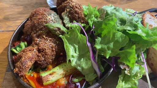 Every dish was freshly prepared to perfection. The vegetarian salad featured flavorful soy meat. The pizzas were incredibly thin and crispy. We could smell the subtle aroma of truffle. The Bismarck pizza was particularly enticing, with its enticing blend of spices. We added a touch of Tabasco for an extra kick.