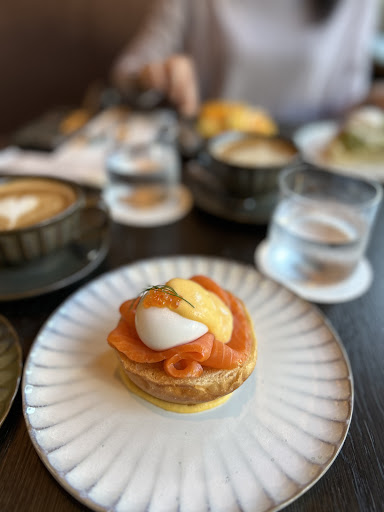 Elegant Dining Environment The café’s interior design combines modern minimalism with cozy elegance. Large windows allow sunlight to flood in, filling the space with warmth and a sense of relaxation. The blend of Nordic and Japanese-inspired decor creates a peaceful ambiance, making it a wonderful place to enjoy a leisurely breakfast.