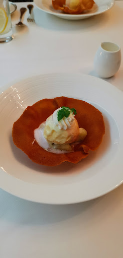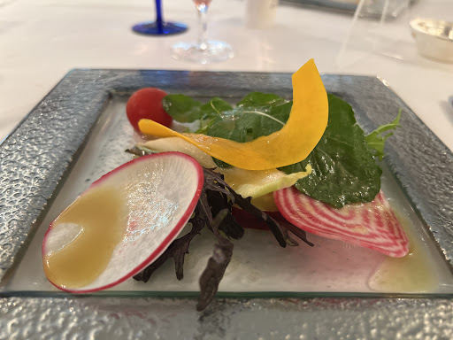 Elevated, seasonal dishes are offered in this lavish French restaurant with garden views.