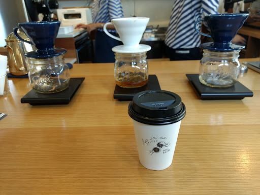 They offer blends and single origin coffees brewed in an espresso machine or as hand drips. Their beans are provided by Coffee Wrights. Some simple Japanese sweets are also sold. A standard item is a roll spread with butter and sweet adzuki bean paste.