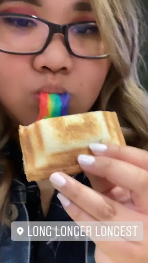 Truthfully, I wanted to order everything on the menu but I didn’t have the room in my stomach to get through all of it so we settled on the rainbow cheese toast for ¥700 and the longest churro for the same price. You can have a custom flavor for your churro or you can have original. The boyfriend is a chocolate fiend so you know he had to have it.