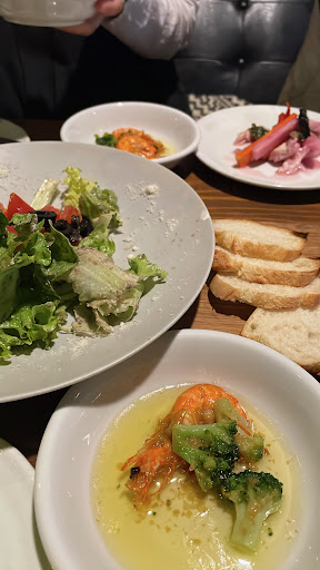Read more2021.8月に利用しました。緊急事態宣言でアルコールの提供はされてませんでした。店員さんの接客が良かったとレビューが多くありましたが、確かに接客は良かったです。初デートでしたが料理が酷過ぎて、彼女に申し訳なかった…冗談でも「おいしいね」とも言えずにお互いに「しょっぱw」「肉堅すぎて飲み込めね~w」等全体的に濃い味付けと、バカでかく切り分けた肉で1切れ10分くらいかけて無言でモグモグして飲み込みましたw もしかしたらコースの料理より単品で頼むか、女子会限定のチーズフォンデュとかなら盛り上がれたのかもしれませんね。 初デートで思い出の場所と思って雰囲気のいいお店を選んだつもりでしたが、残念な気持ちでいっぱいです😞 このレビューをお店の方が見て下さっていたら肉はもっと薄く切った方がいいし、がっつりガーリックの効いた魚介のヤツはパンを付けたりトマトスパゲッティはベシャベシャで薄い味付けで冷凍食品チンして出せよ…てか味見って知ってる?ほぼ全てしょっぱ過ぎです。あと予約したお客様が来る前にテーブルの上の蝋燭に火つけとけよ、終盤で思い出したみたいにつけやがってw あ、あと席に付いてすぐに飲み物だけ注文したがタブレットのメニューが飲み放題の画面にもなっておらず注文出来ていなかった。しばらくしたら飲み放題のメニューを表示させに来て、飲み物を注文し直して、飲み物が来たのがサラダを食べ終わってからでした。2人で「サラダで喉の乾きを癒してるね」と笑いあったのは良い思い出です。ありがとうございます。 お会計で彼女に気を遣わせないように伏せて伝票渡してきて現金で支払ったが、釣銭返す時に金額言って返したら意味ねぇだろうが?頭悪過ぎる。