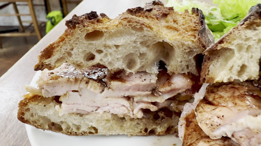 I was searching for a good sandwich and this place came up in my search. It seems to be a bakery first, with lots of delicious bread options to choose from. But I came for a sandwich and it didn’t disappoint. I ordered the pork sandwich and was able to choose the bread, but I went a bit late and the only option was the baguette. It was still delicious and I would higher recommend ordering it. It came with a salad and coffee. The space is rustic and comfortable, with high ceilings and lots of natural light. The service was very friendly and fast. Great little place...