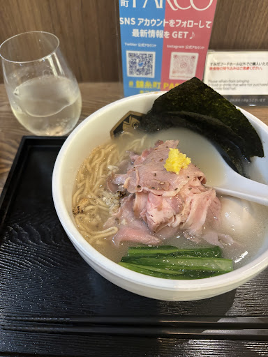 GWも明け、梅雨に差し掛かろうかという皐月の今宵。 本店の味を知った高校生の夏。あの時一口啜った感動は今でも忘れない… 家族もでき、違った景色で見るスカイツリー、すみだ水族館を楽しんだ後、「帰りに何か食べてく?」の妻の一言で私のボルテージはmaxへ。 麺魚に行くしかないっっ! しかし、子連れでかつ、突如の雨模様。傘忘れた今宵に、ベビーカー持って歩くのは…。 そう思ってふとGoogle検索をかけると、なんとこちらのPARCOのフードコート内に出店しているだと!? これは行く以外の選択肢がなくなってしまった。ということでボルテージ爆上げのまま入店。この時、私はまだこのあと見るどん底の景色を知る由もなかった…。