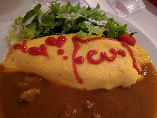 Lunch was an omelette with rice and gravy and a sleeve of draft beer. That cost ¥45,000. 😳