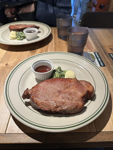 I ordered the smallest size and it was enough. The two people at the table next to me were sharing a giant hunk of pork steak that was big enough for a group of many more people. They seemed as satisfied as I was. It's juicy, tender, and has a great mouth feel. You get to bite into it like you're a carnivore, but it's never tough or chewy.