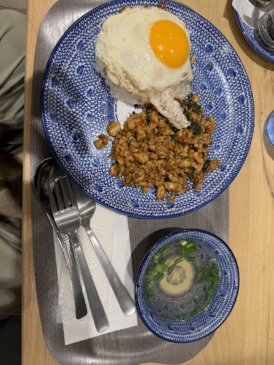 Prices are slightly higher than other Thai restaurants nearby, but the taste and service make up for it. It's a perfect spot to enjoy Thai street food easily. Besides Gapao, they also have Tom Yum Kung and Pad Thai, all delicious.
