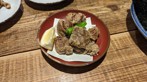【訪問日】2024/6/14(金)夜 【注文したもの/金額(税区分)】 ・ズワイガニ香箱盛り/800円(税込) ・山形コシアブラの天ぷら/700円(税込) ・芋煮(小鉢)/850円(税込) ・マグロの血合い竜田揚げ/700円(税込) ・しょうが焼き/880円(税込) ・海鮮ばくだんのりで巻いてめしあがれ/1200円(税込) ・飲み物諸々 ・お通し(玉ねぎとベーコンを炒めたもの) →9500円 【それを食べた人数】2人 【特筆ポイント】 ・きれいで落ち着いてて居心地の良い雰囲気だった。 ・ご飯は品があってちゃんとおいしい。 ・芋煮は肉じゃがとかより気持ち甘み弱めで、具だくさんでおいしい! ・コシアブラ天ぷらは山菜の苦みがおいしいし、マグロの竜田揚げも血合いの苦みがおいしいし、柔らかい。 ・しょうが焼きは味は優しめだが、豚が良いので柔らかくて、豚の旨味があっておいしい。 ・日本酒も山形のものがたくさん置いてあるし、ジュースも山形の果物ベースのものがあるので、お酒好きも飲めない人も楽しめる。デラウェアジュースは濃厚すぎず、さっぱりしてるが飲んだ時に鼻に抜ける香りはしっかりしてておいしい。 【補足】 ・食事提供までちょっと時間がかかるが、落ち着い...