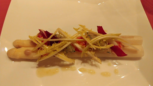 ----- 2021年2月訪問 ----- コロナ禍の楽しみは食べることにありとディナーに訪問。 今日は前菜にホワイトアスパラガスが!何ともいえないみずみずしいシャキシャキ感の中にほんわり甘さがひろがり絶品でした。 内臓が好きなので、事前にお願いしてアンドゥイエットも堪能。外が春巻き風で中は内蔵たっぷりなのがシェフオリジナルな感じでとてもおいしいです。 メインは短角牛のステーキで、おすすめ赤ワインのブルゴーニュとの相性がばっちりで、赤みのおいしさを味わえました。 2組限定で感染対策もされていて、安心して楽しめました。