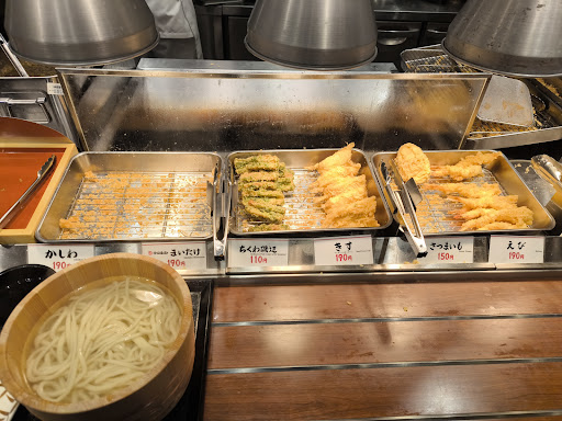 Read more自宅が徒歩1分くらいのところなので、何度かお店に足を運んでいます。 駅前などではないですが、ニトリやヤマダ電機に併設されているので、非常に便利かなと思います。 チェーン店ですので、味は安定していると思いますが、サービスは正直良くないです。 スタッフが多くいるわりには、店内席は空いているのに、調理スタッフによっては回転が悪い時があり、結構な列ができている時があります。 また、天ぷらも商品によっては欠品している時が多く、好きなものが食べられない時が多いです。揚げ場の目の前に天ぷらが陳列されているのだから、状況を見ながら適宜補充していただきたいです。 また、夜にお伺いした時には「今日はもうネギがありません」と言われたことがありました。在庫を切らしていたなら仕方ないと思いますが、毎日営業しているようなお店で在庫のストックがなくなることはありえるでしょうか。もしありえるとしたら、在庫管理が不十分だなと思います。別にネギを食べにきているわけではないのでよいのですが。