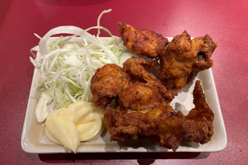 ラーメンを食べていて3分ほどでからあげセットが到着です。 早速唐揚げを頂いてみましたが、薄衣で物凄くカリカリで、名前に負けない美味しさです。 鶏もも肉を6等分位にした大きさの唐揚げで、若干ニンニク感がある程度の風味で、鳥皮の部分は鳥皮せんべいみたいにカリッカリです。 唐揚げ3.5
