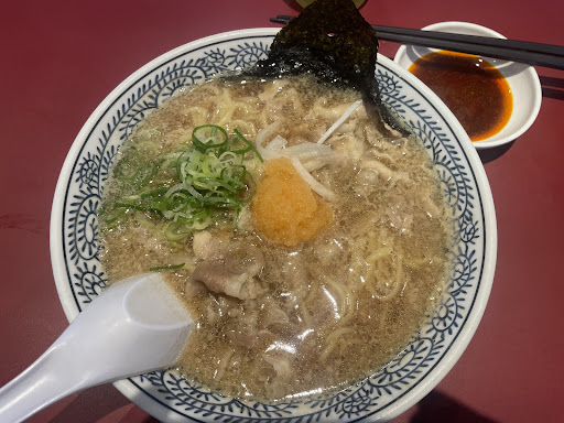 Good cost performance family restaurant-type Ramen place. I ordered the Niku Ramen with fried rice and gyoza set. It cost just under ¥1,100. The ramen was better than expected. Don't expect a Jiro, but somewhat similar to a Jiro flavor with less rich and strong tastes. The menu suggests adding the fried garlic, raiyu and vinegar, but I suggest try without first, especially if you do like Jiro-like flavoring. The gyoza was decent with their raiyu. Adding a raw egg directly to the fried rice served on a hot platter is interesting, and okay when you mix the egg immediately after. NOTE: if you wait too long, the egg becomes dried and overcooked. However, for me only okay. The fried rice itself is industrialized and lacks the wok-hi smokiness I enjoy from well-cooked fried rice over high heat. Overall, everything was enjoyable and better than many ramen places. If you include the price, much better and why the 4 stars. I...