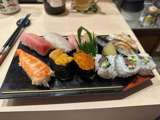 Now to the food. Since it was our first time eating sushi in Japan, (yes, we kinda procrastinated on trying out some right away) We didn't really know what great or even good sushi tasted like. However, to our surprise, the Nagiri Platter that he served was very much to our liking and the fish tasted fresh.