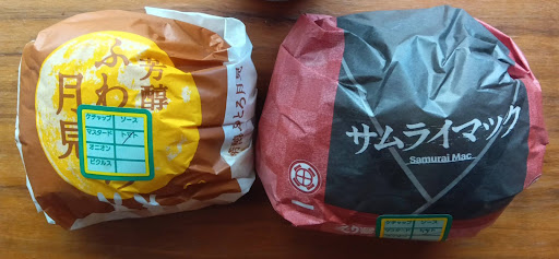とりあえず今回は秋の風物詩、芳醇ふわとろ月見+トマト1枚、炙り醤油風ベーコントマト肉厚ビーフ+トマト2枚。肉厚ビーフ計3枚のトマトのはずが、2枚しかはいっていない泣。たぶんホールスタッフの間違いだろうが、さすがこの店舗。肉厚ビーフの味は申し分ないが、必ず口の周りと手がベチョベチョになるのが難点。パティとソースはおいしい、好みです。芳醇ふわとろ月見は味と見た目が残念で仕方なかった。チーズは溶け出し、目玉焼きパサパサ、ふわとろ食感のスクランブルエッグ風フィリングが逆に味の邪魔をしている、というか訳わからない味。バターの香りとたまごの味わいは残念だが、感じられなかった。普通の月見バーガーにしておけばよかった、と後悔。やっぱりマックのハンバーガーはビックマックですね!一番好きなのはフィレオフィッシュなんだけど。