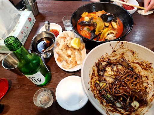 ์น๊ตฌ์ 2๋ช ์์ E์ ํธ(์ง์ฅ, ์งฌ๋ฝ, ๋ฏธ๋ํ์์ก)์ ๋จน์๋๋ฐ ์ผ๋จ ์ง์ฅ๋ฉด์ ํ๊ตญ์์ ๋จน๋ ๊ทธ๋ง์ด์์ต๋๋ค. ๋ค์ ๋ฉด๊ณผ ์์ค๊ฐ ๋ฐ๋ก๋ ธ๋๊ฐ์ด ์์ง์์ ์์์ง๋ง ๋ง ์์ฒด๋ ํฉ๊ฒฉ์ด์์ต๋๋ค. ์งฌ๋ฝ๋ ์ ๋นํ ์ผํฐํ๋ ๋ง์์์ต๋๋ค. ์๋ง ์ผ๋ณธ์ธ๋ค๋ ์ถฉ๋ถํ ๋จน์ ์ ์๋ ๋งค์ด๋ง ์ด์์ต๋๋ค. ์ ํธ๋ก ์ํจ ๋ฏธ๋ํ์์ก์ด๋ค๋ณด๋ 2๋ช ์ด์ ์ง์ฅ, ์งฌ๋ฝ์ด๋ ๊ฐ์ด ๋จน๊ธฐ์๋ ์ถฉ๋ถํ ์ ์ด์์ต๋๋ค.