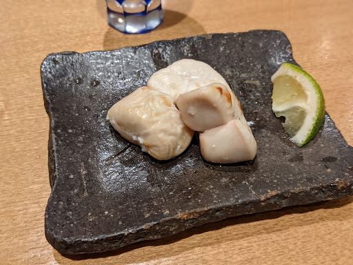 12,イカ 隠し包丁があり柔らかく頂ける。お塩で頂き甘味マックス 13,白身 名前失念(すみません、、、) 14,赤貝 コリコリ食感と甘味 15,小肌 しめ鯖同様に最高のお酢の締め加減。個人的に本当に好みの締め加減! 16,車海老 甘くて柔らかくて食べ応えあり 17,中トロ 口の中でとろけます 18,雲丹の軍艦 このご時世、貴重な雲丹を美味しく頂く 19, 細巻き 胡瓜と赤貝の紐 食感からこのタイミングでのこのあっさり細巻きであることまで、本当に考えられてるコースだと改めて思わされる。ぺろっと完食 20,たまご 少し青のりのようなものと一緒に焼かれてて優しい 21,お味噌汁...
