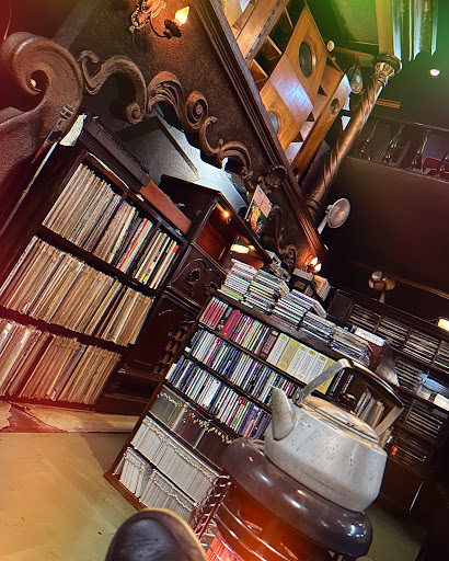 Maybe it’s the high-backed velvet seats, lined up two-by-two on the first floor facing forward to enormous bottom-lit speakers playing Schubert and an altar of ancient-looking classical records. Maybe it’s the triangle clock that is keeping an unknown time or the guy next to me who is drifting between sleep and writing in his notebook. All I know is that I can’t stop my mind from marveling at the passage of time and how a random cafe in this city could have kept a slice circa 1930 paused in an area like this.