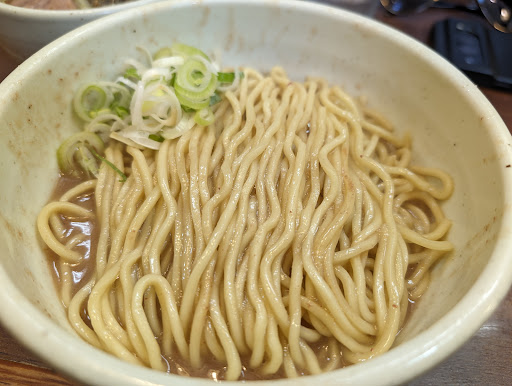 豚骨がしっかり煮出されたとろみのあるスープは濃厚ですがしつこくなく後を引く味。 麺は太麺を頂きましたが、弾力のある太麺と啜り心地のよい長さは自分好みでした。 スープと麺のなので雑念なく食べられる感じです。