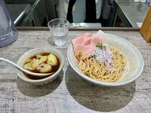 まずはじめに、店主の方の舌とセンスは凄い。 みなさんが書かれている通り、つけ麺のつけ汁をつけずに、麺としらすを和えて食べるように言われるので食べると…止まらない! 貝割れを一本それに加えたら、また異次元な一口となる。ますます止まらん!