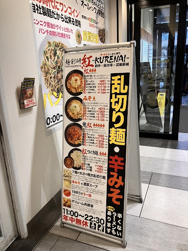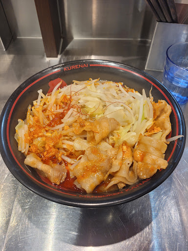 Near Fuchu Station, Men Soken Kurenai serves bold ramen packed with garlic, pork, and chili heat. I had the Kurenai ramen with soft-boiled egg & rice set (¥1,164) — rich pork flavor, chewy noodles, and a fiery broth! Topping rice with the pork & egg made a quick “stamina donburi.” Loved it! Next time, I’ll try the “Oni Kurenai” for extra spice🔥