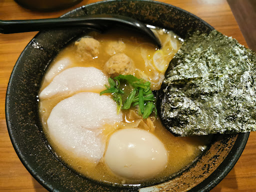 Read moreRich and mild chicken soup ramen with soy source. you can rarely find the combination of white chicken soup with soy souce anywhere, but this shop achieve the quite good quality with them. Chicken meat balls is so good, which are made from the collaboration with a Yakitori(焼鳥) shop. Highly recommend to mix well before eating to enable to taste garlic that sink...