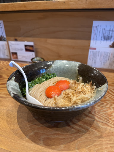 What makes it special: you can enjoy a “second bowl” (nidome-men) with a different sauce—like getting two dishes in one. The cozy counter setting lets you watch the chef in action, creating each bowl with care.