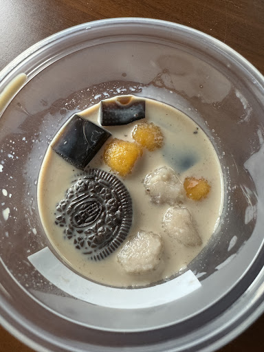 There were several ice cubes and they were huge, I feel like I got half a drink. The ice cubes were so huge I ended up ripping the top open and throwing the ice cubes in the bin somehow because I couldn't move the straw to get the nata de coco bits. The sweetness was ok. The drink itself was tasty, nothing wrong with the taste.