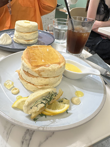 What I got the fluffy pancakes ofcourse. This is my second time at having fluffy pancakes and so I was anticipating it to be eggy. And I am not sure if I have already been conditioned but it was not as eggy as I thought it would be. The pancakes were jiggly and fluffy. It as very freshly made. I got their seasonal pancakes and i think the toppings are more on the artificial side.. there was a slide of lemon jelly? Overall it was okay for what it was.