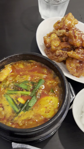 Not very crowded for dinner. The atmosphere was very korean as they played kpop songs. We ordered 3 dishes. ✅Bibimbap. I like the toppings but too little sauce for mixing ✅Sundubu. Served hot. I like that they gave us a lot of seafoods - clams, squids, and shrimps. Too bad the soup is a bit too salty ✅Fried chicken Nangmyoen sauce - Ordered 6 pieces although they have 8 pieces. The chicken is big and juicy. Not dry at all. Tasted great with the bibimbap. Overall, it satisfied your craving for Korean food but cannot be...