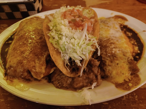 The food is good. It's definitely texmex. The spicy is not at all so I worry that the mild will just be bland. I had the hungry hombre, because I was. Spicy chicken enchilada, spicy beef burrito (fork and knife kind), and beef soft taco. The taco was a but wet but the beef was well seasoned and worked good with the other stuff on top. I can see why someone would think the bean taco bland though. It isn't the best texmex I've eaten but it was good and hit the spot. I can't comment on the booze because I don't drink but they had big bowl margaritas.