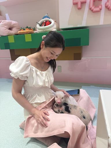 During our trip to Tokyo, my wife and I had the delightful experience of visiting a unique mini pig cafe, and it was nothing short of magical. Upon entering, we were greeted by a bustling room full of mini pigs of all sizes. It was a heartwarming sight to see not just the tiny baby pigs scampering around but also the bigger ones, each with its own adorable personality, eagerly waiting for their forever homes.The cafe itself offered a cozy and welcoming atmosphere, with plenty of pigs to go around, ensuring that every visitor got their fair share of piggy cuddles. The highlight of our visit was perhaps the piggy-shaped donut – a cute and tasty tribute to the stars of the cafe.